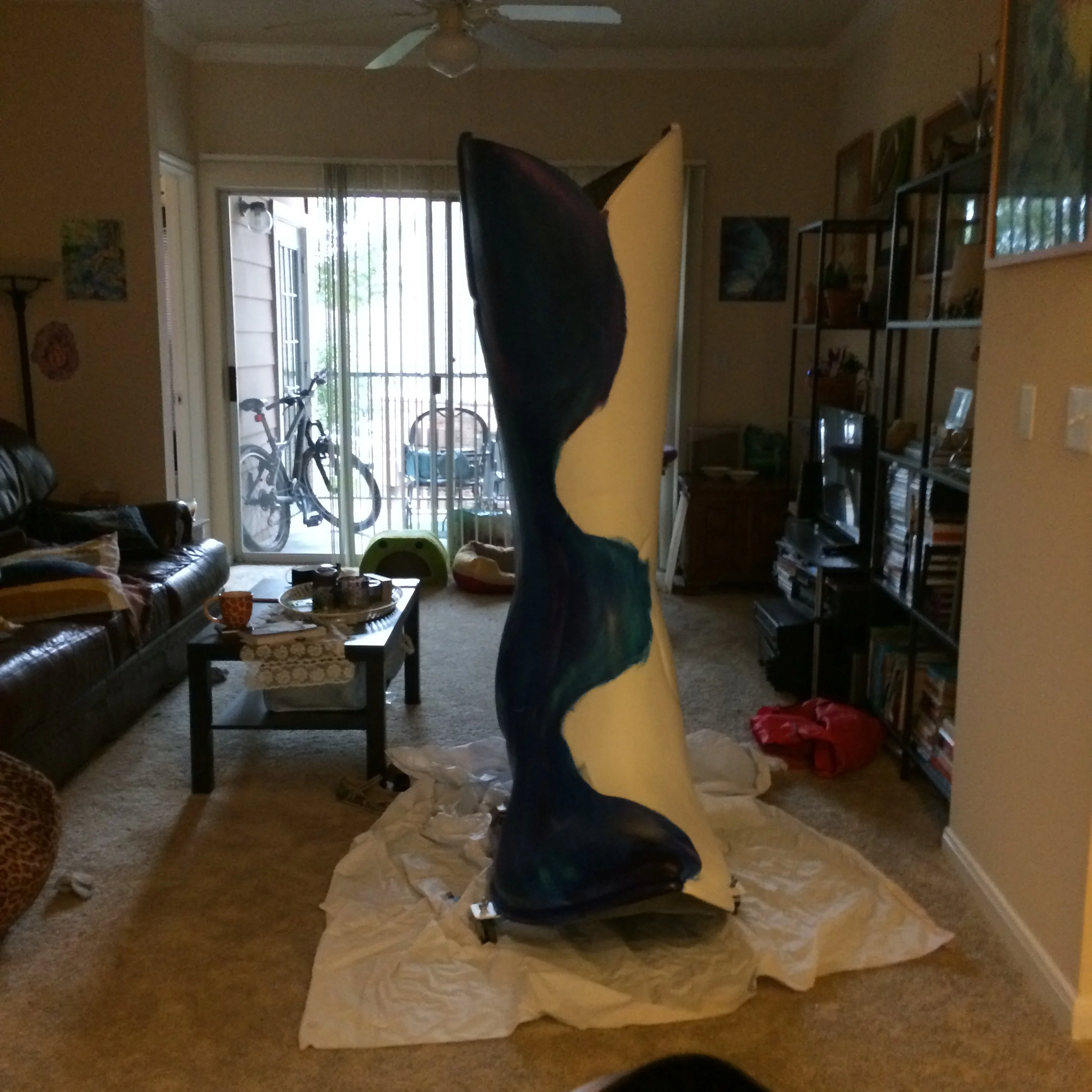 Here we see a giant boot in a tiny living room apartment. Good times.